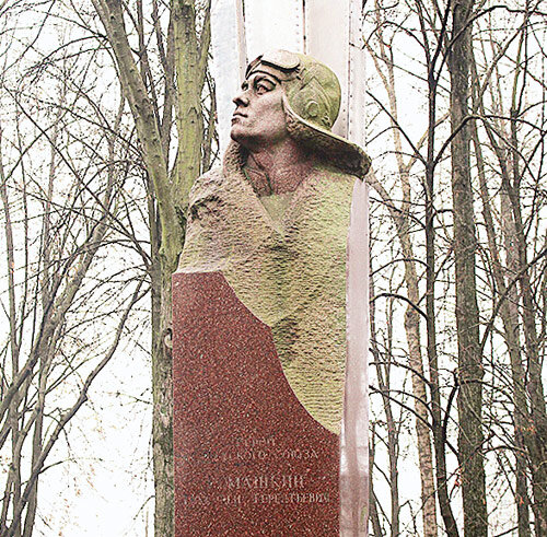 В скверике возле аэропорта со стороны улицы Аэродромной, на окончании улицы Короткевича, установлен памятник Ромашкину Т.Т.