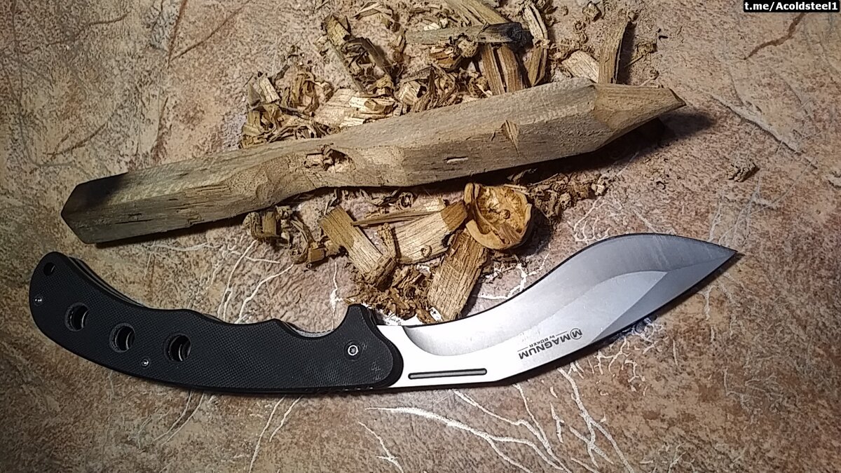 В лесу показал себя прекрасно. Пластиковую 0,5 с водой рассек пополам, 1,5 наполовину. Сырые толстые ветки рубит с 1 раза (живых растений не губил), сухие крошит, ломает - вес 230 гр. Легко