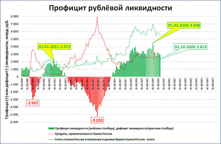 Профицит рублёвой ликвидности снижается, но не критично