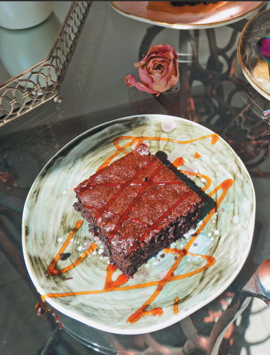2. Разогрели духовку до 180 °С. Взяли прямоугольную или квадратную форму, на дно положили пергамент. Выложили в форму тесто, поставили до готовности в духовку на 35–40 минут. Достаем в мягком состоянии и не пугаемся: когда брауни остынет, станет тверже. После этого режем на равные части.