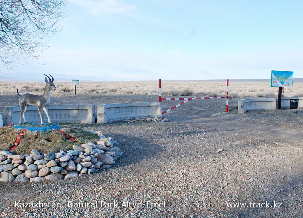 Около часа едем по грунтовке среди простора «казахстанской саванны» окруженной кольцом Джунгарских и Тян-Шаньских гор. Дорога сносная, местами «стиральная доска». По пути проезжаем два егерских кордона, где показываем разрешительный документ для проезда. Грунтовка имеет несколько развилок, егеря говорят, не везде можно ездить, некоторые дороги снабжают шипами от браконьеров. Именно по дороге к бархану можно чаще всего увидеть куланов (дикая лошадь) и лошадей Пржевальского. Куланы в природном парке Алтын-Эмель