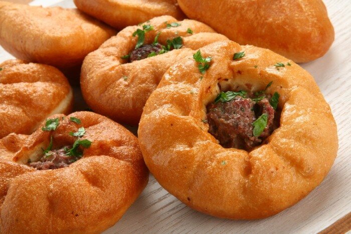 - Горячие ленивые беляши сразу же подаем к столу.