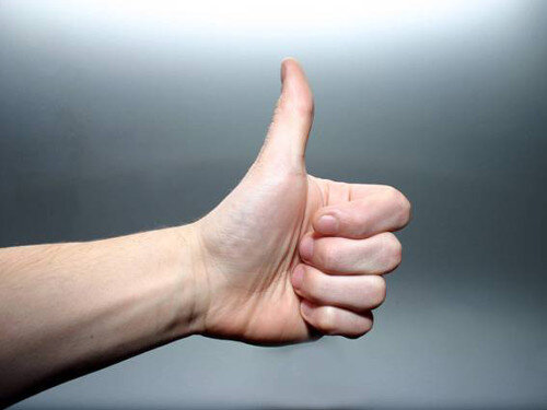 Самый распространённый жест, в наше время используется очень часто, означает одобрение эти человеком чего-либо. Соответственно, если он опущен вниз, то наоборот, отрицательный эффект.
