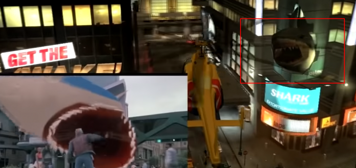 В городе есть такое местечко, над которым возвышается голова огромной акулы. Скорее всего, это является отсылкой к фильму «Назад в будущее», где на Марти из здания выпрыгивала точно такая же голова акулы. Правда, там это была голограмма, а в игре — полноценная физическая копия.