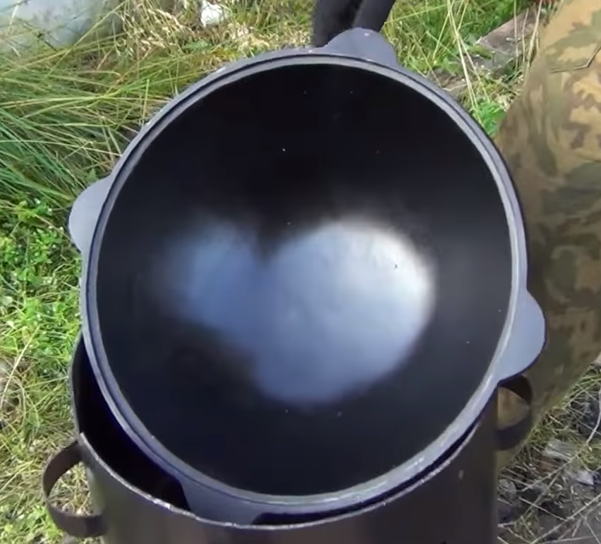 Во-вторых, сразу после покупки казан обычно имеет зернистую поверхность, потому что его отливали в песок. Поэтому требуется отшлифовать его с помощью наждачной бумаги.