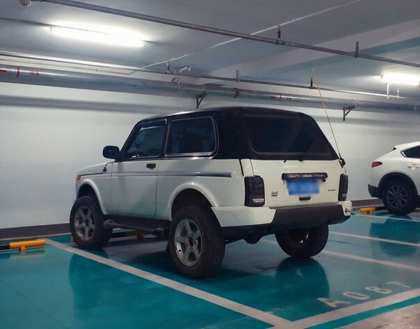 Необычную Lada 4x4 заметили на одной из парковок в Китае. Машина выделяется контрастными черными крышей, стойками и зеркалами, чернеными фонарями, хромированной полоской, протянувшейся через весь кузов, и внедорожной резиной.