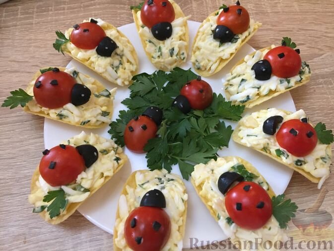 - Закуска "Божьи коровки" на чипсах
