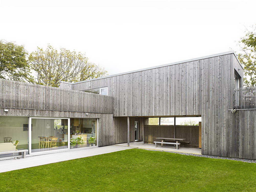 Этот деревянный дом построен в небольшом городе в 20 километрах к югу от Гётеборга. Его форма и планировочное решение стало результатом поиска лучших видовых решений для этого непростого участка. В японском искусстве садоводства есть понятие «shakkei», примерно обозначающее принцип «включения фона пейзажа в состав сада». Он используется для «захвата» различных видов (горы на горизонте, небо вверху или вода внизу) и включения их в общую композицию локального сада путём организации контролируемых видовых точек, что, в конце концов, позволяет визуально сделать сад значительно больше, чем он есть, а жильцам чувствовать себя в естественном природном окружении. Примерно такую задачу решали архитекторы, проектируя этот дом.
