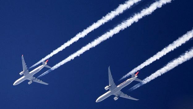 На малых высотах они состоят из капель воды, которые обычно быстро испаряются, и след исчезает. А вот когда самолет идет на большой