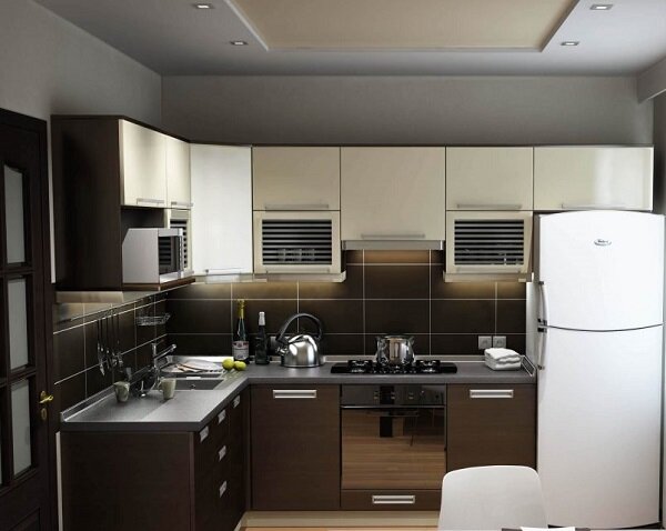 В процессе реализации дизайн проекта кухни вам непременно понадобятся такие параметры как общая площадь кухни, высота потолков и ширина стен (простенков), отметить расположение окон и дверных проемов. Если вы сами займетесь подключением кухонной техники, то не забудьте отметить места где планируется ее подключение. Стремительное развитие современных технологий позволит без труда подводить водопровод и канализационный слив практически в любое место. После того как планировка комнаты будет выполнена приходит время обдумать план расстановки кухонной мебели. Мебель можно расположить на кухне используя различные варианты типовых схем. В том случае если площадь вашей кухни довольно скромная — вам сэкономит пространство линейное расположение мебели вдоль одной из стен, а расположение кухонной утвари параллельно у противоположных стен — это с удобством организует кухонное пространство и позволит всегда все иметь под рукой.
