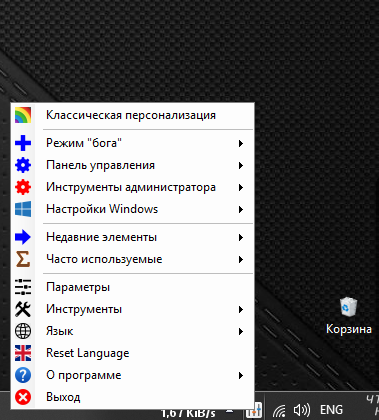 Утилита включает в себя ярлыки для настроек Windows: