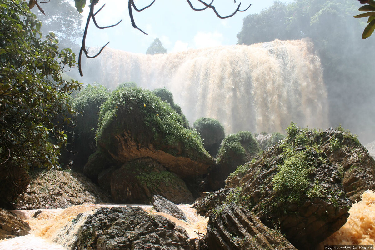 Водопад не даром получил такое название. Слоновий значит самый мощный и грациозный. Хотя подъехав к водопаду ты даже и не подозреваешь какой зверь здесь живет. Вот вид на водопад с площадки стоянки мотобайков. Впереди перед Вами поляна. Красивая с цветочками и лютиками. Вроде все спокойно , только какой то посторонний шум мешает полностью
