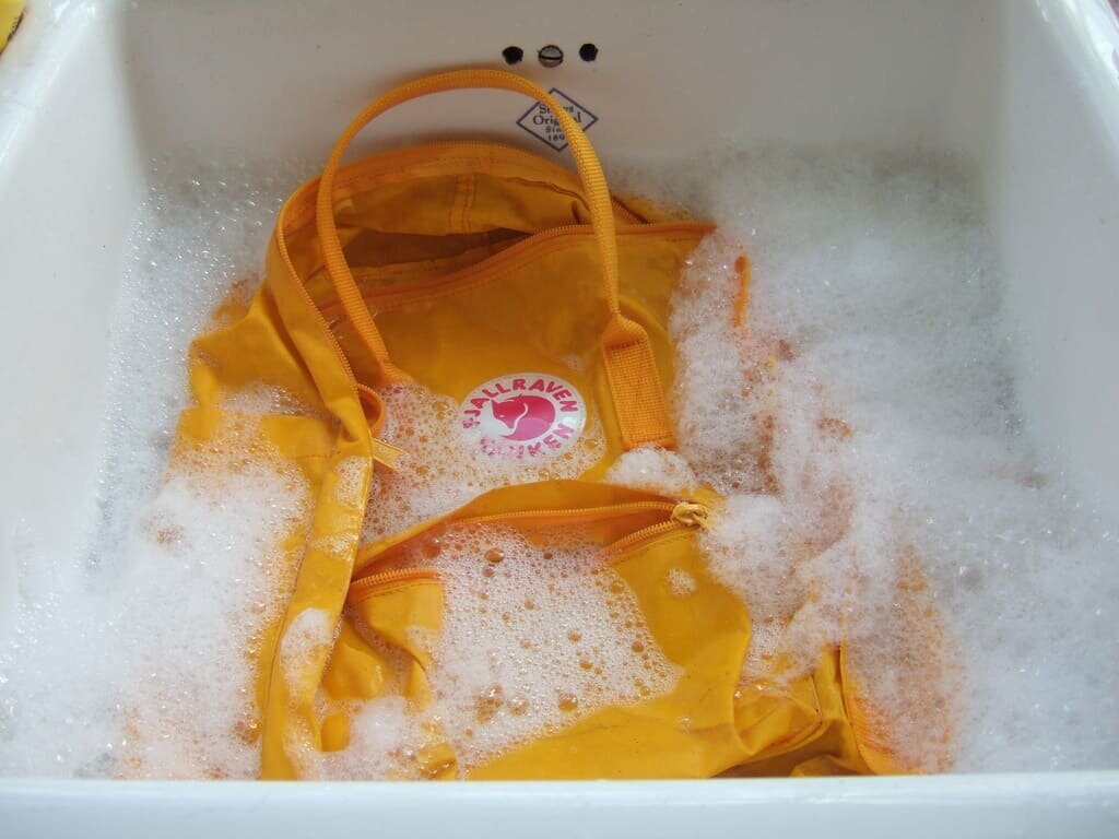 - Замочить рюкзак на полчаса в мыльном растворе;