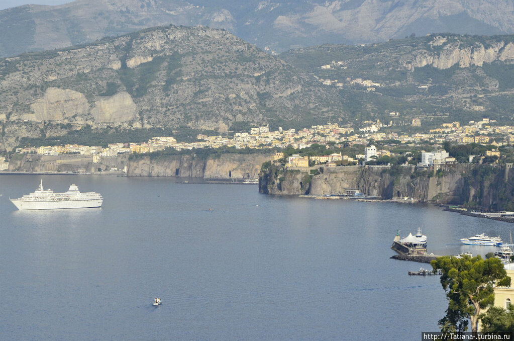 Про поздний вечер не оригинально. Поэтому не буду. К тому же я была там утром и ранним вечером. В Сорренто добираться очень просто. Если вы только прилетаете в Италию, то из аэропорта Неаполя можно доехать автобусом до Сорренто — это не далеко (около часа) и автобусы ходят регулярно. Информацию о расписании где-то находила, но так как мне она была не нужна, то не сохраняла эту информацию. При необходимости легко её найдёте. Если ваш путь по Италии более сложный, то в Сорренто можно приехать на электричке из Неаполя. На середине пути Неаполь-Сорренто будет Геркаланум, Везувий и Помпеи. В пути электричка ж\д ветки «Чиркумвезувиана» (Circumvesuviana) 40-45 минут, отправления каждые 30-40 минут. Я в Неаполе жила в отеле, расположенном посередине между центральным вокзалом и вокзалом Чиркумвезувиана. Вокзалы находятся рядом. Что бы от центрального вокзала Неаполя попасть на вокзал Чиркумвезувиана, можно идти через город (а не внутри вокзала), и выйдя из центрального вокзала, пройти через площадь и повернув налево (не переходя через дорогу) пройти еще метров 300 примерно. При этом в центральном вокзале вроде есть какие то отдельные платформы для этой ветки частной ж\д Чиркумвезувиана, но я не проверяла, потому что мне в отель было удобней идти от станции Чиркумвезувиана. Билеты рассчитаны на временные интервалы. Билет на 180 минут стоит 4.10 евро, на 140 минут 2.90 евро (октябрь 2013). Если вы слишком привыкли к европейским чистеньким и красивеньким вагонам поездов с космическим дизайном, то будете немного раздосадованы (особо впечатлительные будут в легком шоке)) убитостью составов и интернациональностью попутчиков)) Я то взрощена на Москва-Петушки, мне норм)) Не волнуйтесь! Они все вполне нормальные люди, просто цыганисто-шумные и детей у них много)) А в некоторых составах и бегущая строка не сломана и остановки по громкой связи объявляют. Напугала? Эх, не собиралась. Но предупредить, считаю, надо. А то многие не подготовленные начинают не любить Неаполь и юг Италии, он де грязный и убогий, и эта зашоренность мешает им увидеть реальные богатства этого края. Так вот, если в вагоне не объявляют станций, то пугаться не надо: в каждом вагоне над дверьми есть схема с остановками, на каждой станции есть таблички с названиями — всё просто и понятно. Можно в Сорренто поездом и из Рима. И из любого другого города тоже можно. Но сначала надо доехать до Неаполя. И пересесть на местную электричку Чиркумвезувиана.На выходе со станции "Сорренто" (это получается вниз по ступенькам), будет палатка с бесплатными информационными брошюрками. А в двух шагах от нее касса автостанции. Ожидаемой привычной площади нет, всё компактно. Выход с ж\д станции, на маленьком пятачке информационная палатка и кассы, а по левую руку дорога, туда подъезжают автобусы, которые везут по Амальфийскому побережью [[заметка не найдена]] Когда поедете обратно, то кассы на электричку наверху. Что бы попасть от станции в центр города, надо оставив станцию за спиной пройти по тротуару вперед (в сторону моря) до пересечения с большой (по меркам маленького города большой) улицей и повернуть налево. Ещё чуть-чуть и вы в центре города. По самому Сорренто тоже ездят рейсовые маленькие автобусики, проезд 1 евро. Я на нём с набережной поднималась на верх. Вниз есть лестница, которая находится в центре Сорренто. Лестница меня не