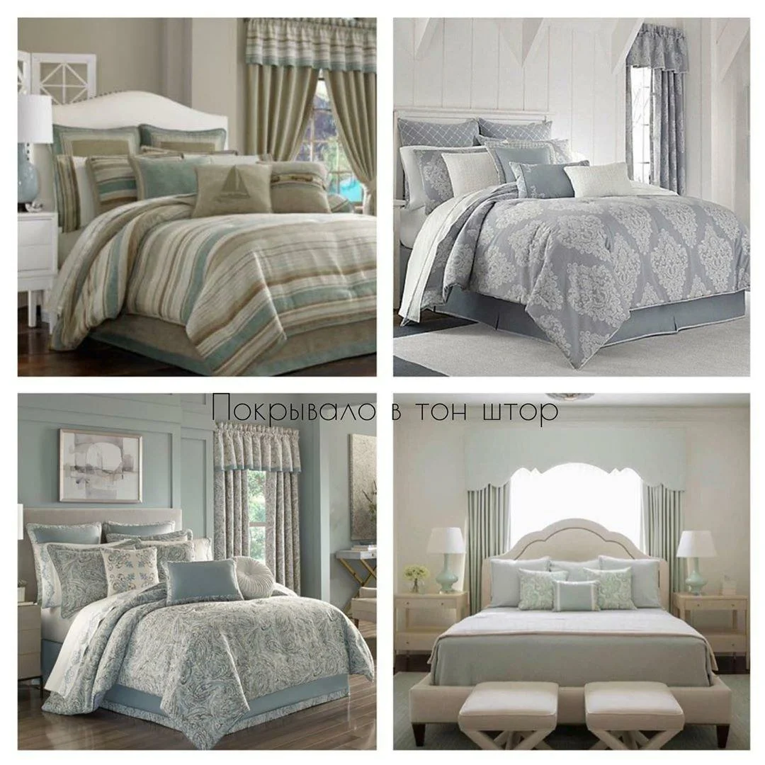 ⚜️ПРАВИЛО 1 Если шторы подобраны в тон стен, то сочетать покрывало с этими шторами совсем не обязательно. Шторы сливаются со стенами и выступают фоном. В этом случае покрывало может быть акцентным, либо в тон текстиля (кресло, пуф, подушки - но не все одного цвета должны быть подушки). ⚜️ПРАВИЛО 2 Покрывало не должно быть монолитным. Либо сверху накладывается дорожка контрастного цвета, либо покрывало имеете контрастную подложку и делается загиб почти на половину кровати, чтобы разбавить основной цвет. Либо можно добавить кайму. ⚜️ПРАВИЛО 3 Акцентное покрывало должно быть самым ярким и большим акцентом в интерьере. Т.к по площади занимает достаточно большое пространство. Его можно поддержать небольшими аксессуарами: вазы, элементы на картинах в тон, другие детали. ⚜️ПРАВИЛО 4 Если шторы вы планируете сделать яркими, сильно отличающимися от цвета стен, тогда покрывало не стоит делать в тон штор. Два больших одинаковых акцента начнут перетягивать на себя внимание. Если шторы яркие - дост