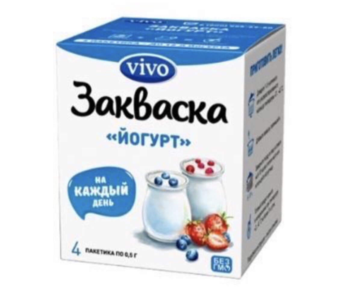 1. Закваска 67р. (в упаковке 4 пакетика, мы используем 1).