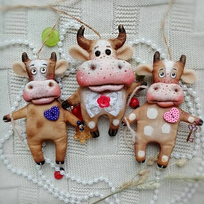 Еще несколько идей для выкройки. Создавайте игрушки и сувениры в виде бычка к Новому году 2021 и радуйте своих близких уникальными подарками.