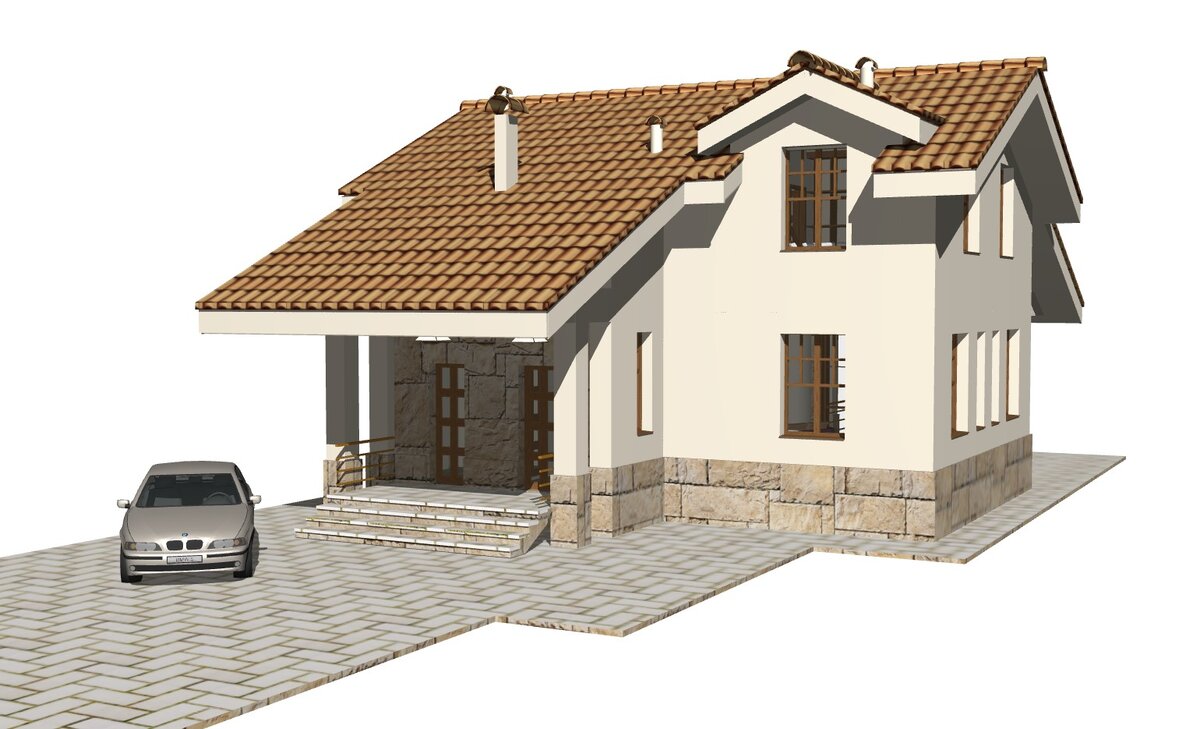ШАЛЕ-ШАТО - новый проект экономичного и вместительного дома со стенами из газобетона (пеноблока). В доме 5 изолированных комнат, одна из которых на первом этаже и четыре в мансарде.