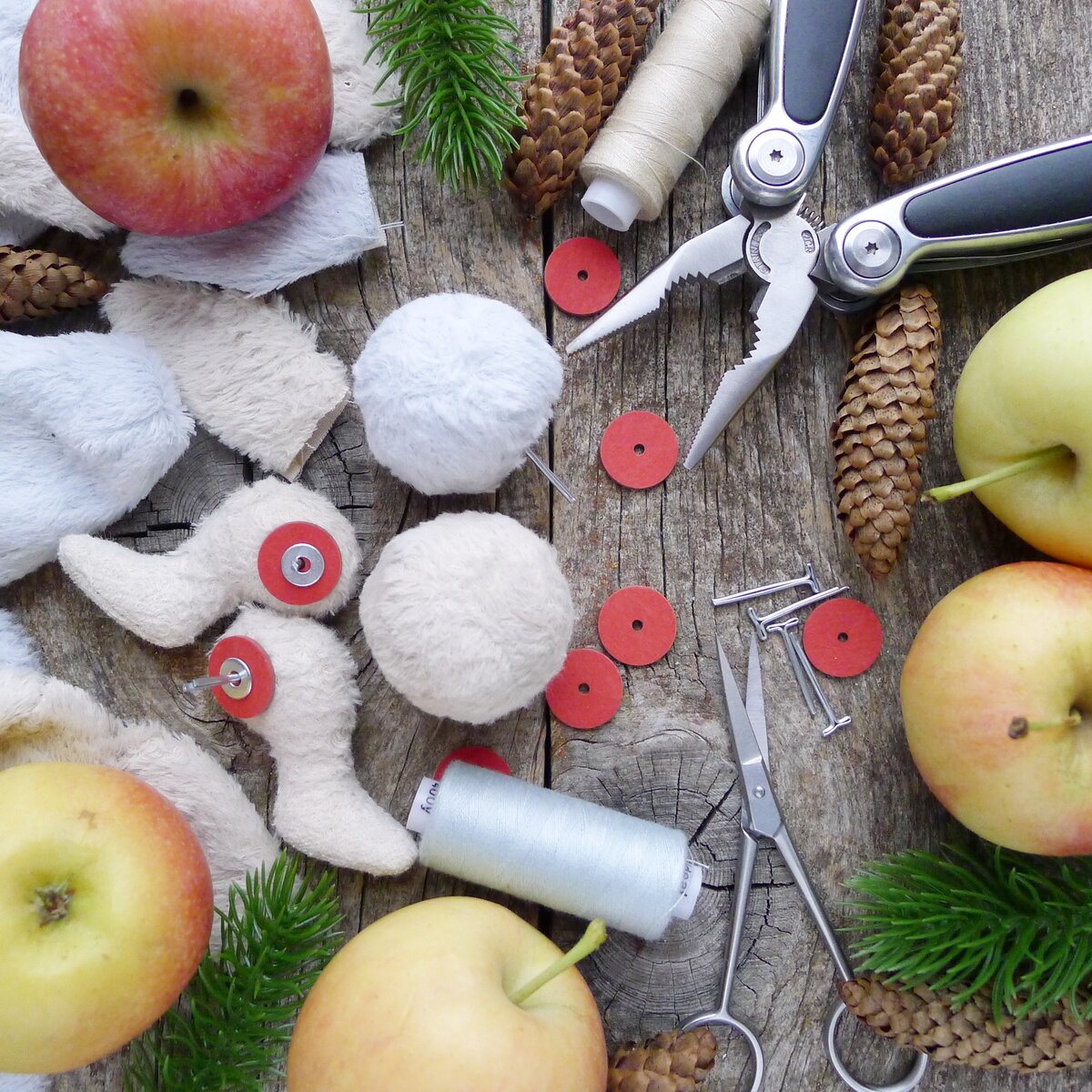Итак, в феврале я наконец сшила лапки и прочие конечности. Начала набивать готовые запчасти опилками.