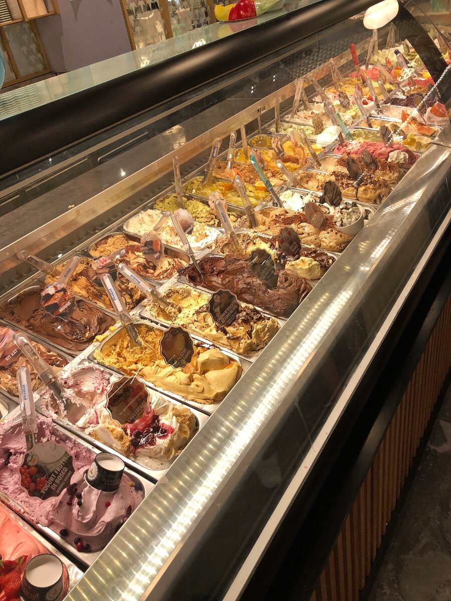 Впервые, мы зашли в магазин мороженого (на итальянском - gelateria) сразу, как прилетели в Рим. Такого количества вкусов, я не видела никогда в своей жизни! Без преувеличений - это четыре огромных стенда, свыше 20 вкусов каждый. Они смотрели на меня и манили к себе. Как выбрать? За что хвататься? Я возьму шесть шариков! Нет. Семь! 🤣
