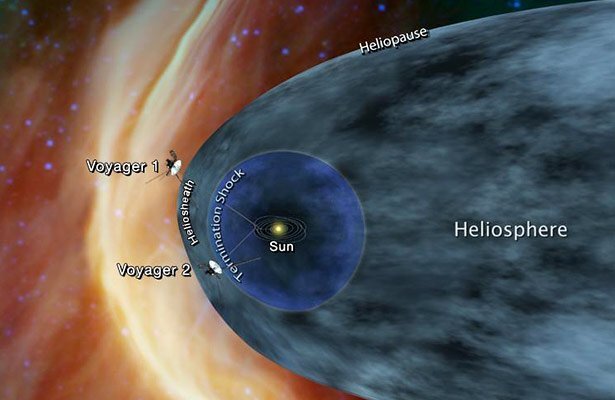 Voyager 1, 2 - это два космических аппарата, "близнецы", намеренно отправленные за пределы солнечной системы. Еще и с нанесенной на них плитой из золота на специально для инопланетян придуманным языком. Как Эсперанто придуман как общий для разговора любых народов, в NASA придумали "язык физиков" - координаты, длины волн, диаметры атомов водорода - такой алфавит. Еще золотой диск с музыкой и