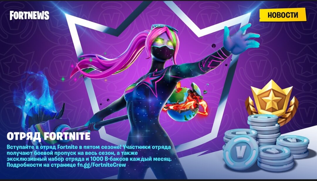 ⚡Вступайте в отряд Fortnite в пятом сезоне! Участники отряда получают боевой пропуск на весь сезон, а также эксклюзивный набор отряда и 1000 В-баксов каждый мес