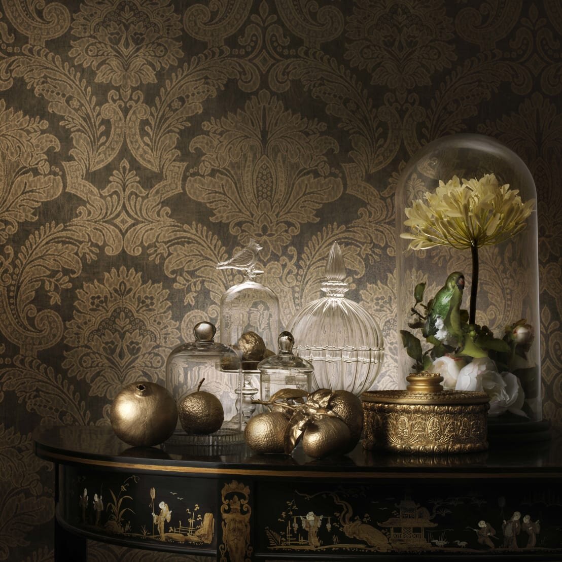 Весьма распространенной сферой применения орнамента считаются обои на бумажной, велюровой и даже виниловой основе. Оклеить обоями с дамасским орнаментом все стены комнаты – явный перебор. Из-за роскоши и богатства узора лучшим решением остается «роспись» им одной из стен. Исключение составляет тот самый нейтральный дамаск. Подчеркнуть изящество облаченной в дамасские мотивы акцентной стены помогут предметы-компаньоны, включая зеркала и подушки.