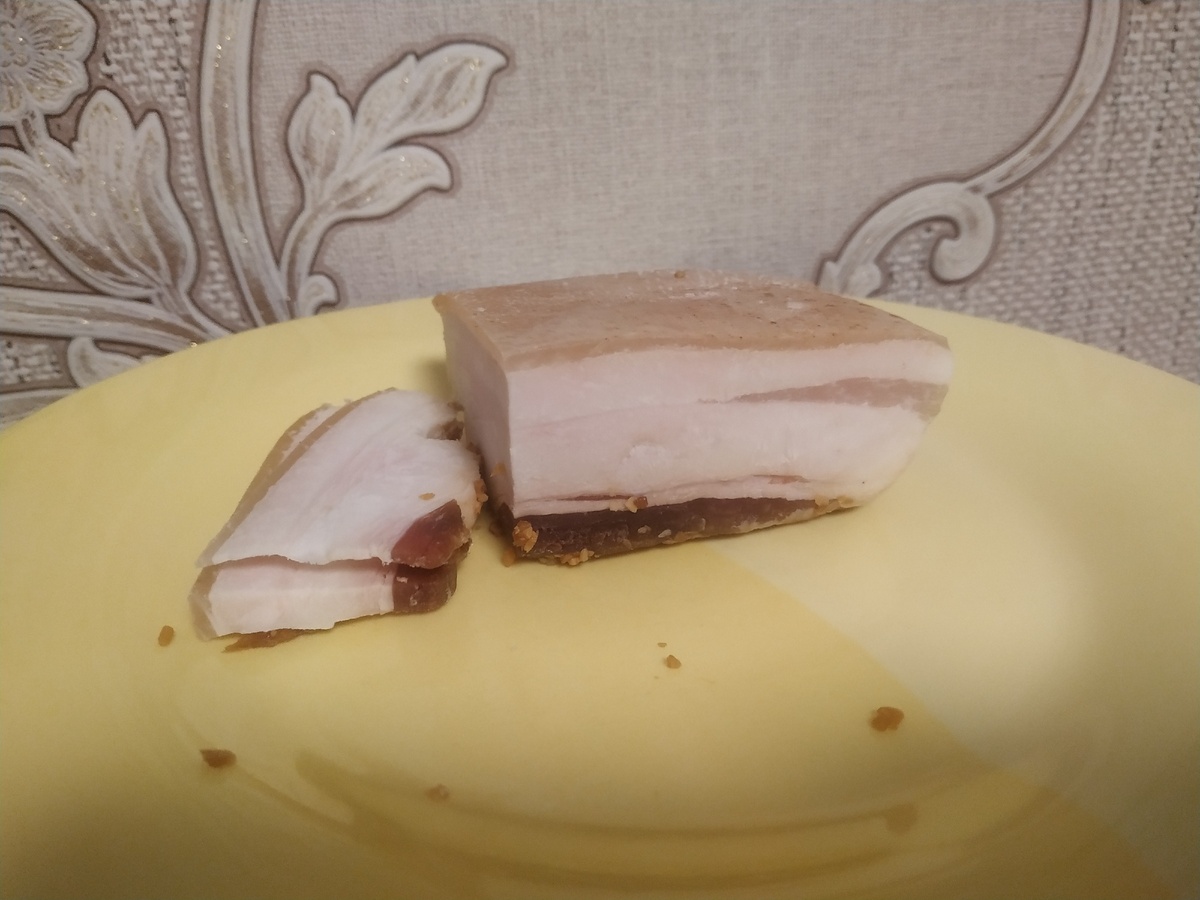 Итак, для начала покупаем грудинку, и желательно чтобы она была срезано с ребер, там нежное сало, которое как раз нам подойдёт.