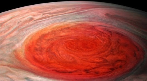 10 июля 2017 года космический аппарат «Юнона» прошёл над Красным пятном Юпитера и сделал снимки, гораздо более подробные, чем те, которые астрономы имели в своём распоряжении до сих пор. Проделав путь около 9000 км над Пятном, зонд запечатлел его с расстояния 9866 км. После того, как снимки прошли специальную обработку, на них стало отчётливо видно, что ярко-красный овал гигантского смерча прорезают языки облаков более тёмного оттенка.