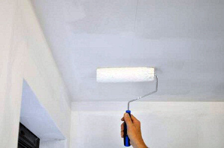 Количество слоев зависит от типа грунтовки. Она обычно наносится в один слой. Если после выполненных работ на потолке будут заметны небольшие островки, на которых нет грунта, ничего страшного. После того как проведено грунтование, через некоторое время приступаем к нанесению водоэмульсионной краски.
