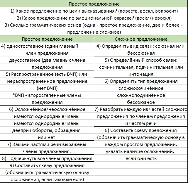 Чтобы всё точно было понятно, пройдемся по пунктам этого плана. Я покажу разбор простого и сложного предложения на конкретных примерах.