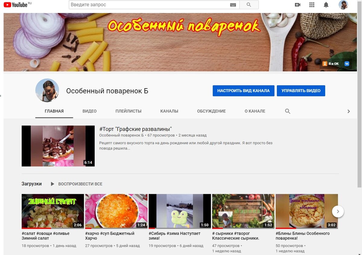 Недавно я стала вести свой канал на Ютубе (Особенный поваренок) делюсь с аудиторией своими рецептами, но и немного что-то из своей жизни. Канал только начинаю развивать, но хочу поделиться с теми кто тоже только новичок и ищет себе подписчиков.
