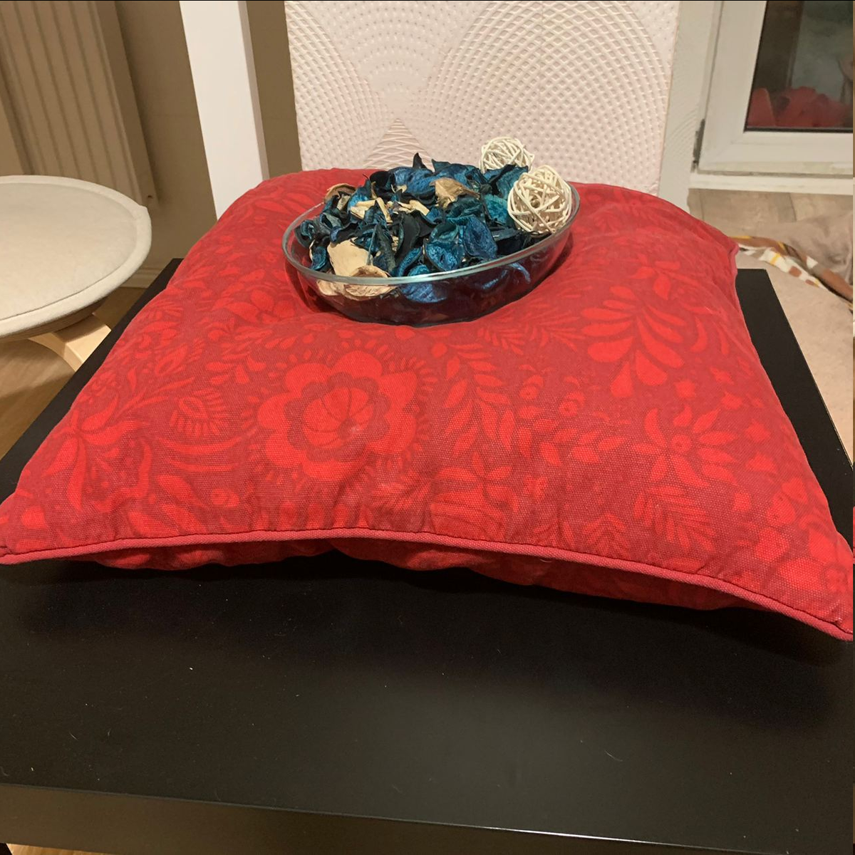 Целый год эта насыпка радовала меня своей красотой и прекрасно дополняла недорогой столик из той же Икеи, но сейчас, она совершенно не вписывается в