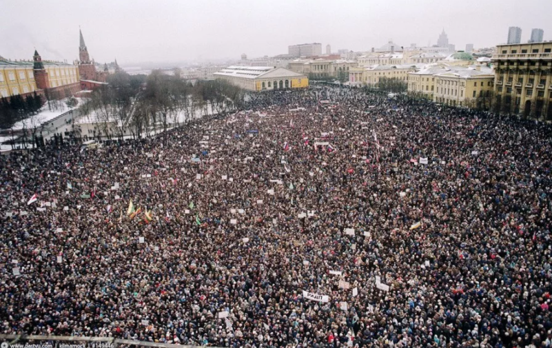 Приняли участия около 600.000 человек. (!!!) Это самый массовый митинг в истории России, таких не было до и после.