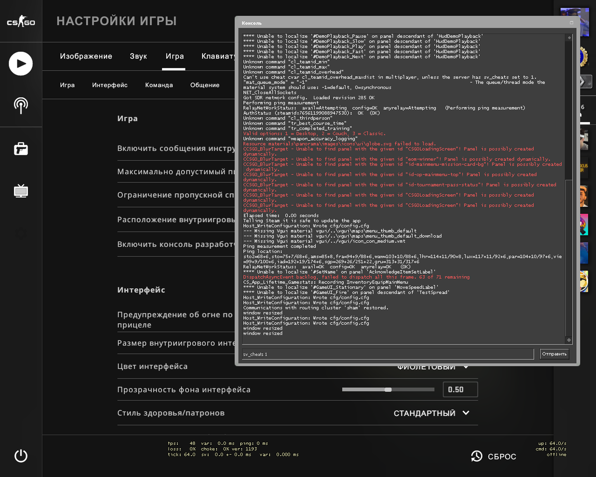 Для того чтобы включить консольное вх в CS:GO Вам придется зайти в консоль, затем пишем команду sv_cheats 1 , r_drawothermodels 2