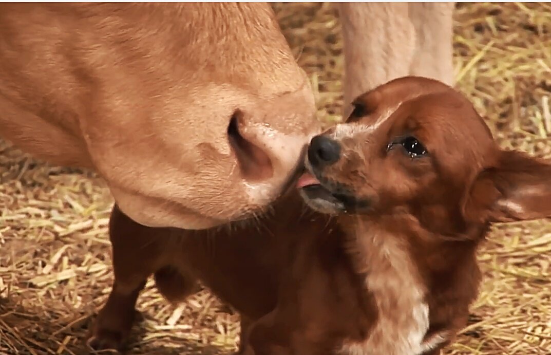 Щенок настолько привык к корове, что даже спал на её спине. Вместе они обедали и обменивались лаской. Пёс рос среди коров и по настоящему считал, что он телёнок. Мам не выбирают и щенок был счастлив расти среди этой семьи. Когда он пугался, то прятался под коровой это было для него своеобразным убежищем, где он находил покой.