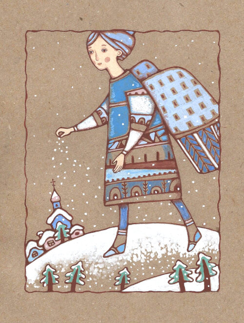 Продолжаю выкладывать подборки Рождественских открыток с моими иллюстрациями. В прошлом году нарисовала ангелов на крафт-бумаге. Такая бумага один из самых любимых моих материалов. Уж очень нравится ее натуральный теплый цвет. Вообще, нынешняя мода на крафт мне очень по сердцу. Так мило, например, выглядит букет цветов, завернутый в такую упаковку. А еще, все эти всевозможные коробочки, пакетики... Это такой максимально простой и экономичный, то есть выгодный по деньгам, материал. А рисую на этой бумаге чем только в голову придет: акрилом, пастелью, карандашами и даже акварелью. Вот как раз картинки с ангелами рисовала акрилом. Хотела сделать серию открыток с такого рода рисунками, но пока руки не дошли. Ангел в подарок на Рождество-это как раз очень даже в тему. Возможно, когда-нибудь продолжу эту серию и нарисую их побольше.