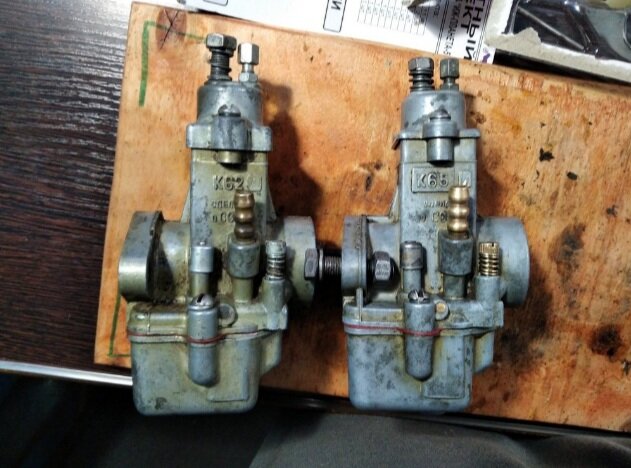 Для помощи в моей затее от PDPCustoms мне было подогнано два карбюратора… Карба… Два куска карба! У них не было заслонок, игол, стояли непонятно какие жиглеры, и ещё много косяков. К тому же это были К62Д — юпитеровские. Ранее я полагал, что различие у них только в жиклерах, что, установив подходящие, я смогу получить запасной карб, но, оказалось, что и сечение карбюратора отличается.