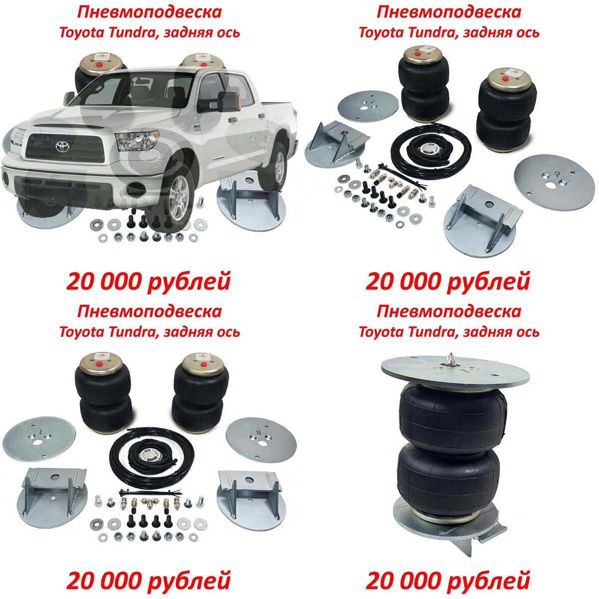 Задняя пневмоподвеска Тойота Тундра на двухсекционных сильфонах 160D2 снимает нагрузку со штатных рессор по 1200 кг каждый. Комплект пневмоподвески предусмотрен для установки на Toyota Tundra с 2007 года. Установка пневмоподвески Тойота Тундра на заднюю ось займет порядка пяти часов. Установить пневмоподвеску на заднюю ось Toyota Tundra предлагаем в установочном центре Торговый Дом Автовариант в