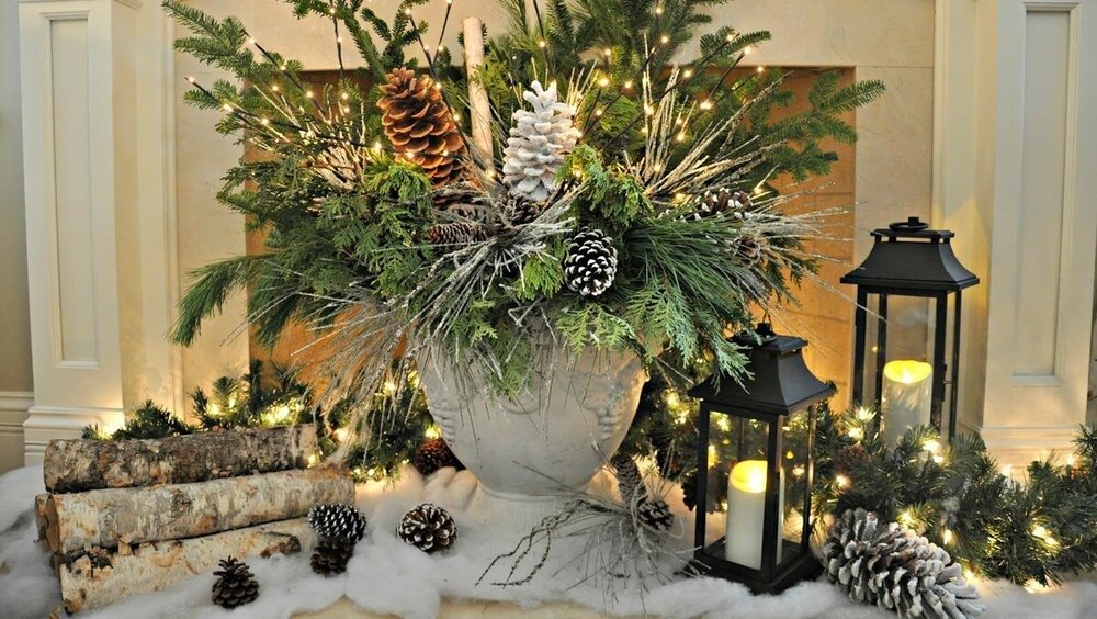 Причем необязательно еловые. Подойдут пихта, сосна, падуб, эвкалипт. Даже рябина — любые красные ягоды на ветках отлично впишутся в рождественскую тематику. Особый шик — раскидистые ветки лапника в прозрачной бутыли.