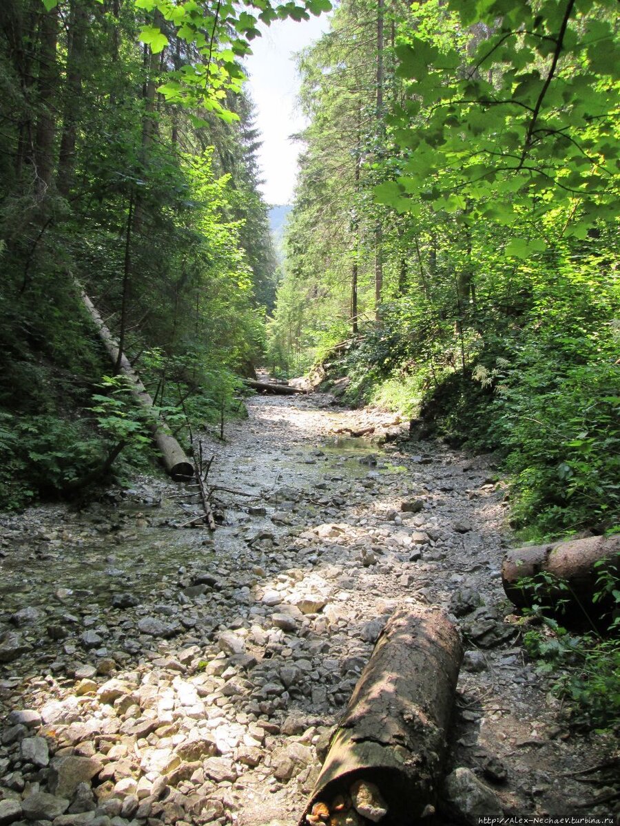 Падучая вода позади, но градус подъёма неизменен. По сторонам вместо каменных откосов – сорокаметровые ели. И сиротливо грязнеющая в земле Суха Бела.Окончание каньона, но не реки