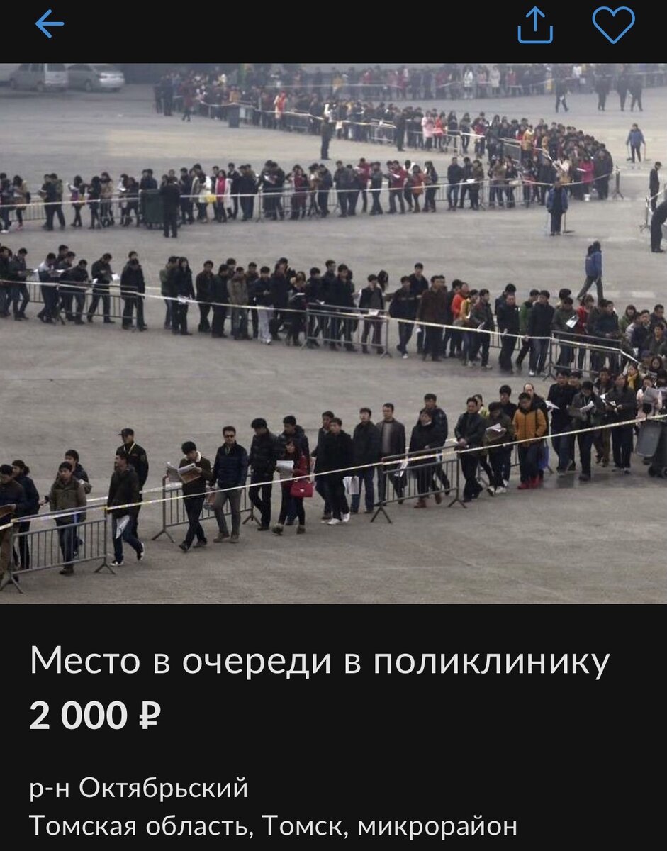 На Авито появилось объявление, где предприимчивый товарищ предлагает новую услугу - отстоять за Вас очередь в поликлинику.