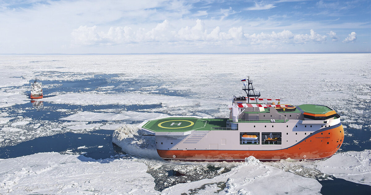 Проект разрабатывало конструкторское бюро “Вымпел”, и на моменте проектирования были разные варианты дизайна судна. Форма корпуса, опять же подобно “Фраму”, напоминает яйцо. Длина судна чуть больше 83 м. Оно будет иметь на своём борту многочисленные научные лаборатории, вертолётную площадку и удобные каюты для 14 членов экипажа и 48 научных сотрудников. Автономность плавания ограничена запасом топлива и составляет 2 года, но при условии доставки топлива и провизии судно сможет пробыть во льдах гораздо больше. Конечно такой большой проект не всегда проходит гладко, и сроки окончания строительства уже сдвинули. Ожидается, что платформу сдадут заказчику в 2022 г.