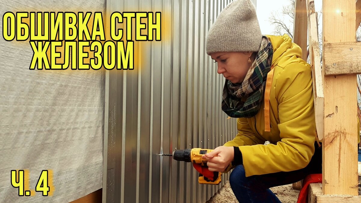В прошлых статьях я рассказала, как мы строили столбчатый фундамент, возводили каркас и стелили крышу, а сегодня мы начинаем обшивать стены профильным железом и поликарбонатом.