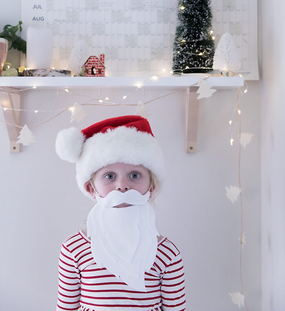 Приклейте три бороды друг на друга – от большей к меньшей. Усы приклейте прямо на верхние концы бороды, оставив пространство для рта.