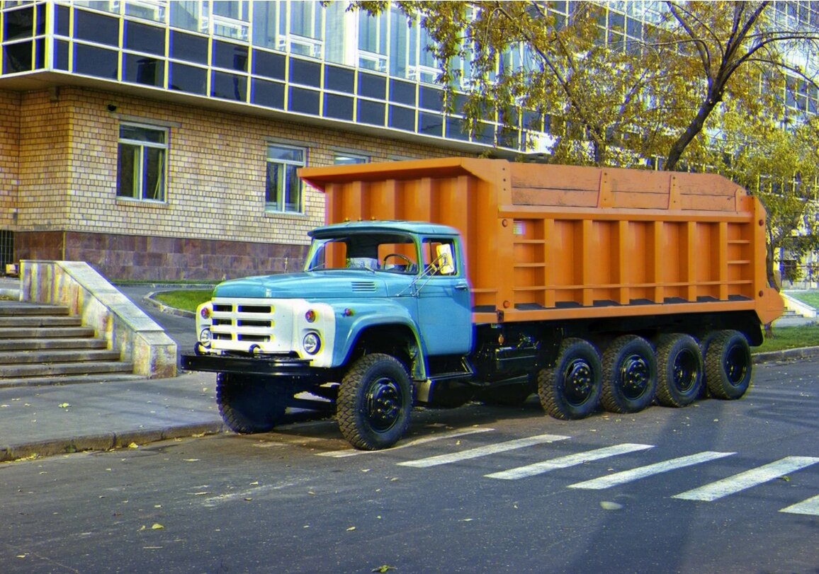 Однако… Мыши плакали, кололись, но на продолжение опытно-конструкторской работы дали добро. Уже в 1989-90 годах завод построил 4 опытных шасси 8х4 ЗИЛ-5Э133ГЯ с двигателем КамАЗ-7403. На базе первого шасси построили самосвал, второй тоже стал самосвалом, но с бескапотным вариантом кабины 4331. Третий и четвертый превратили во внутризаводские тяжеловозы. Больше всех публике известен последний вариант тяжеловоза с красной кабиной, который был перестроен как раз по компоновке 10х4 и имел грузоподъемность 30 тонн. Наш же сегодняшний герой был пущен «на гвозди» в 1992 году, когда завод преобразовали в акционерное общество…