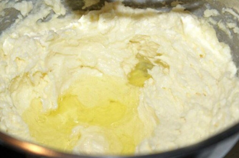 Взбить размягчённое масло со сметаной и сахаром до белой пышной массы. Добавить постепенно белки, тщательно взбивая.