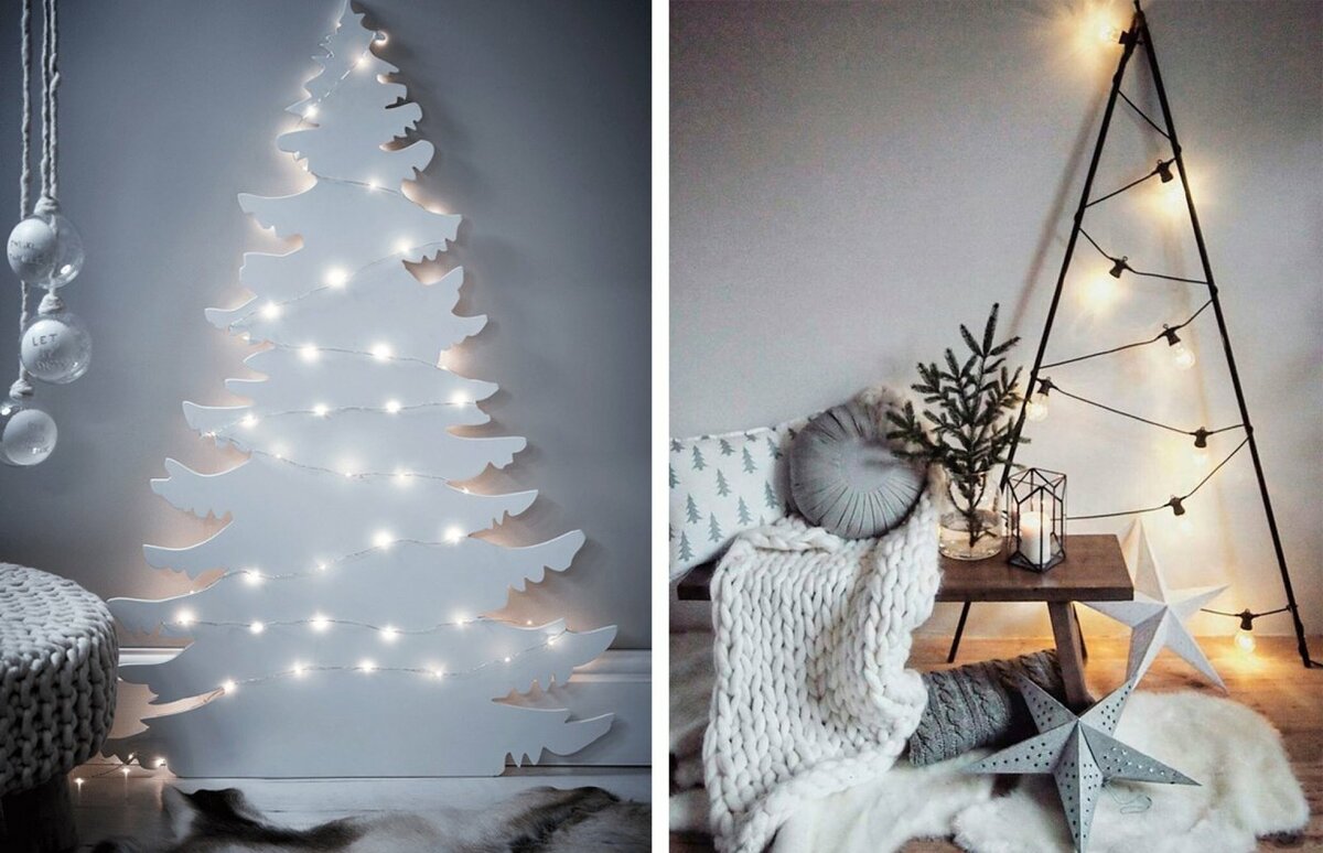 Модная тенденция последних лет - креативная елка. Это может быть и не дерево вовсе, а, к примеру, "елка" из гирлянд, развешанных на стене. Или настольная композиция из металла в футуристическом стиле. Креативные елки станут хорошим вариантом для небольших помещений, в которых настоящее дерево разместить проблематично. К этой же категории относятся и различные хвойные букеты, их можно расположить по всей квартире, включая кухню и прихожую.