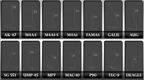 Recoil control Guide, Разброс на разном оружии CS:GO