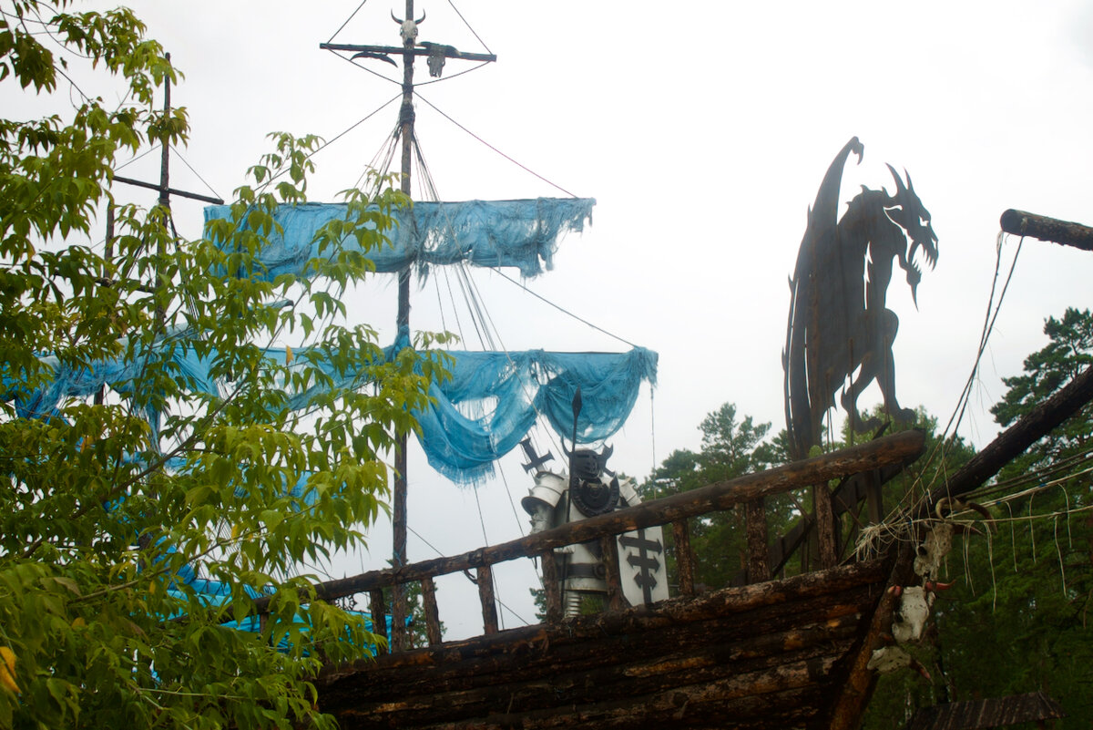 Но вот навигатор сообщил, что мы приближаемся к конечной точке маршрута, Иркутскому полигону бытовых отходов, а проще говоря, к свалке... И ТУТ У МЕНЯ ОТВАЛИВАЕТСЯ ЧЕЛЮСТЬ! С палубы огромного корабля на нас смотрели десятки закованных в полные доспехи Войнов, такие же расположились на высоком частоколе вокруг парковки!